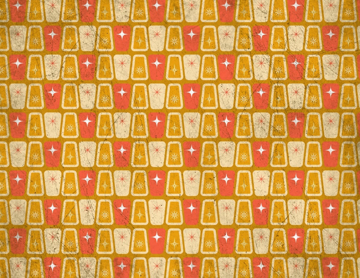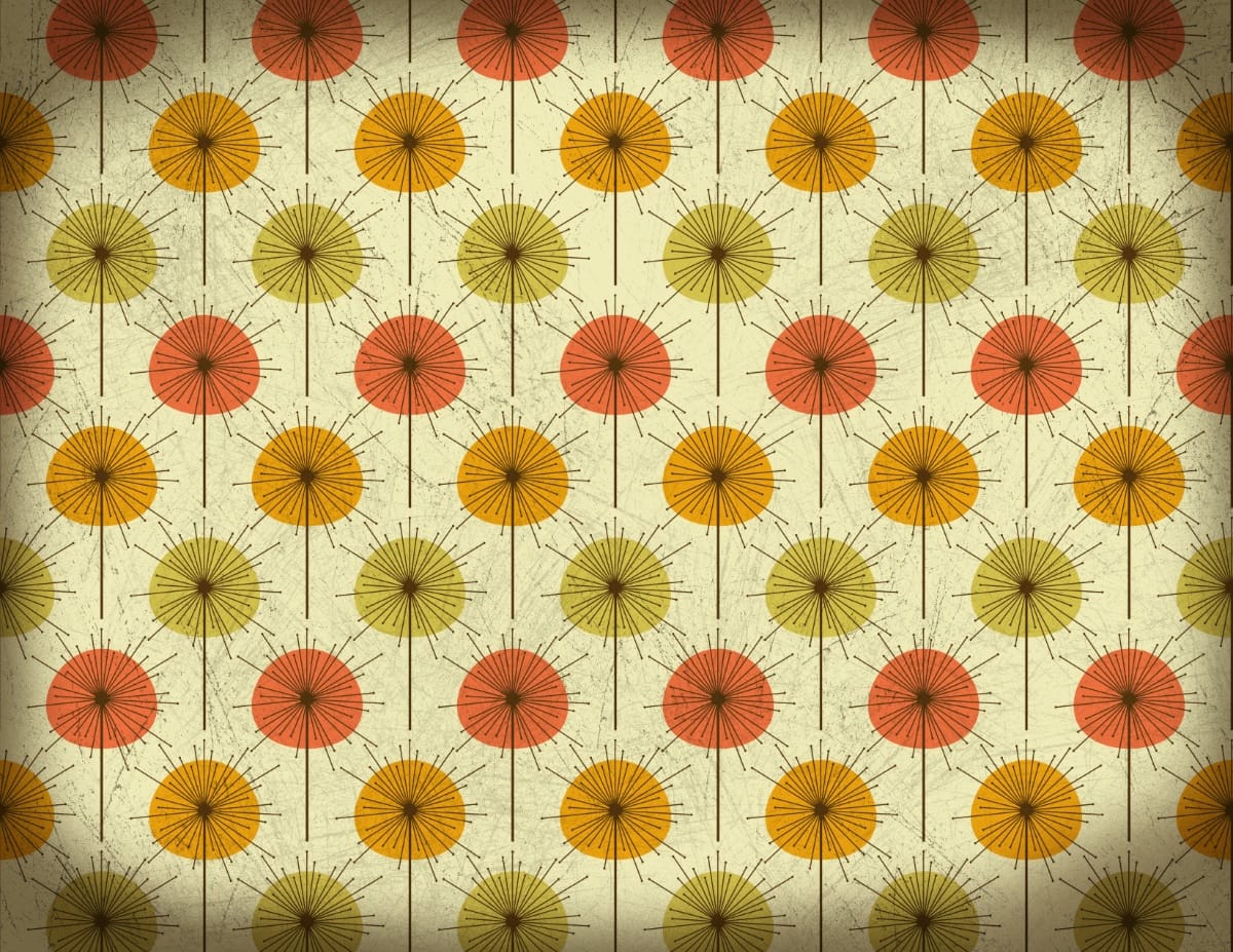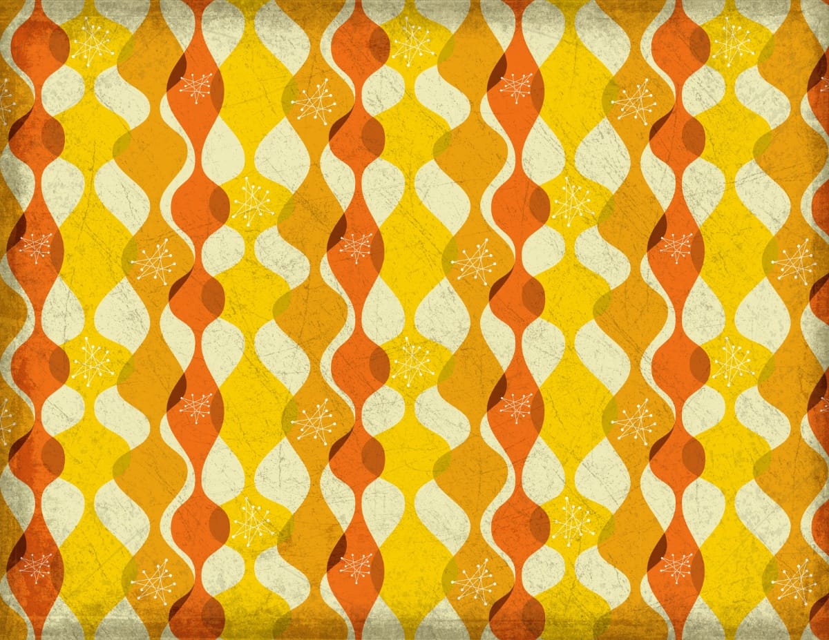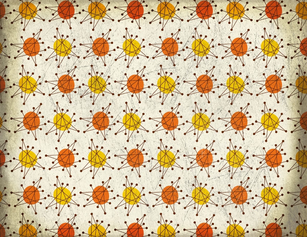 - Mid-century modern patterns with retro atomic starbursts and mod shapes
